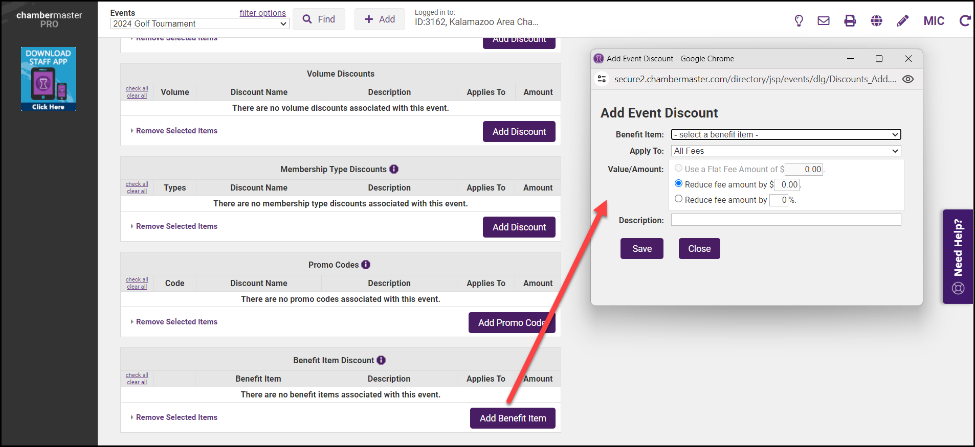 The Benefit Tracker discount has to be in the benefit tracker. Click here for a video. Go to the 18-minute mark to show how to set up the Event.