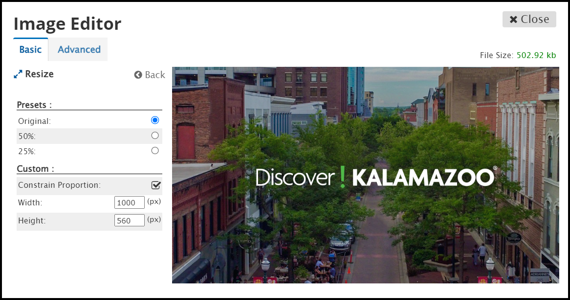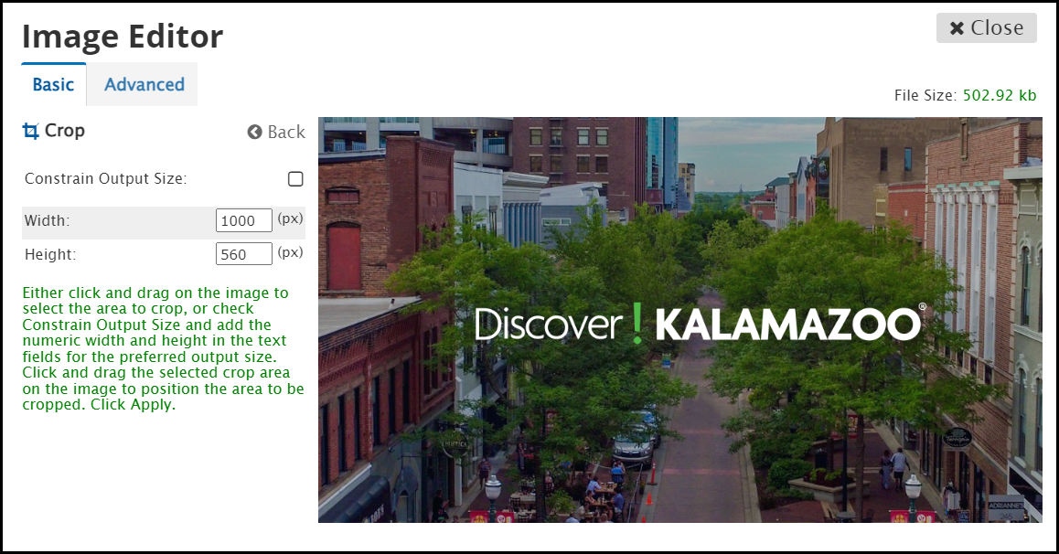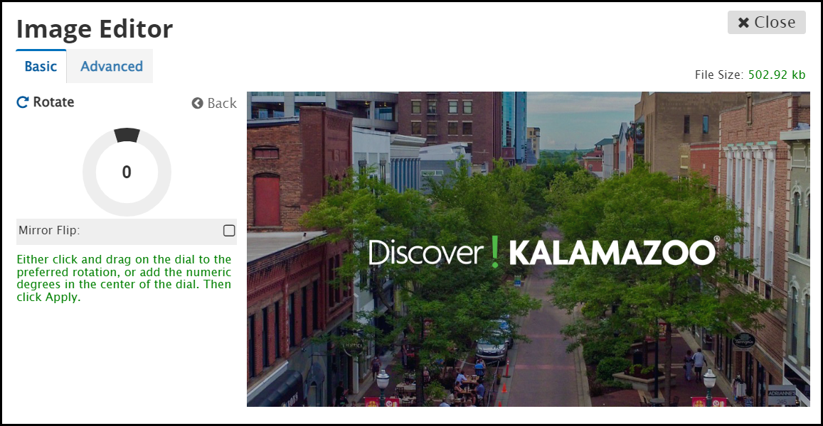 Use the Image Editor to make edits to the images on your website in your File Manager.