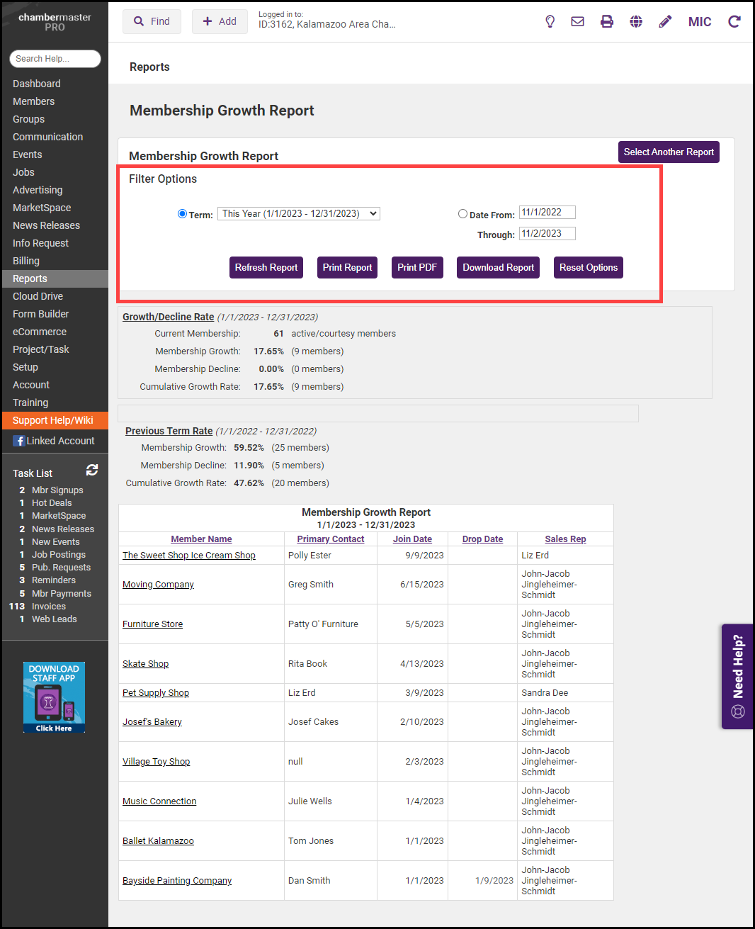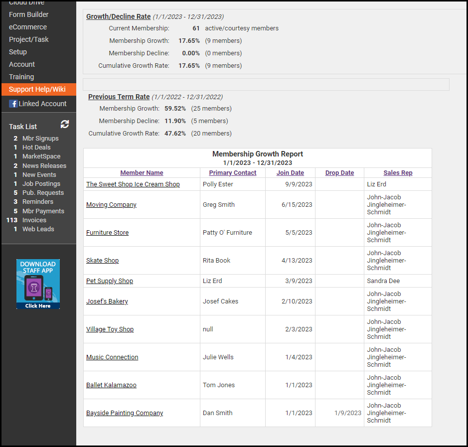 - Click the green arrow next to Membership Growth Report.