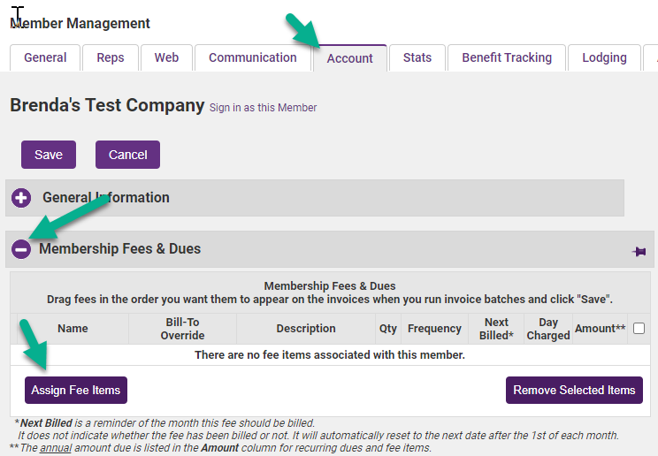 - Complete the Assign a Member Fee Item fields.