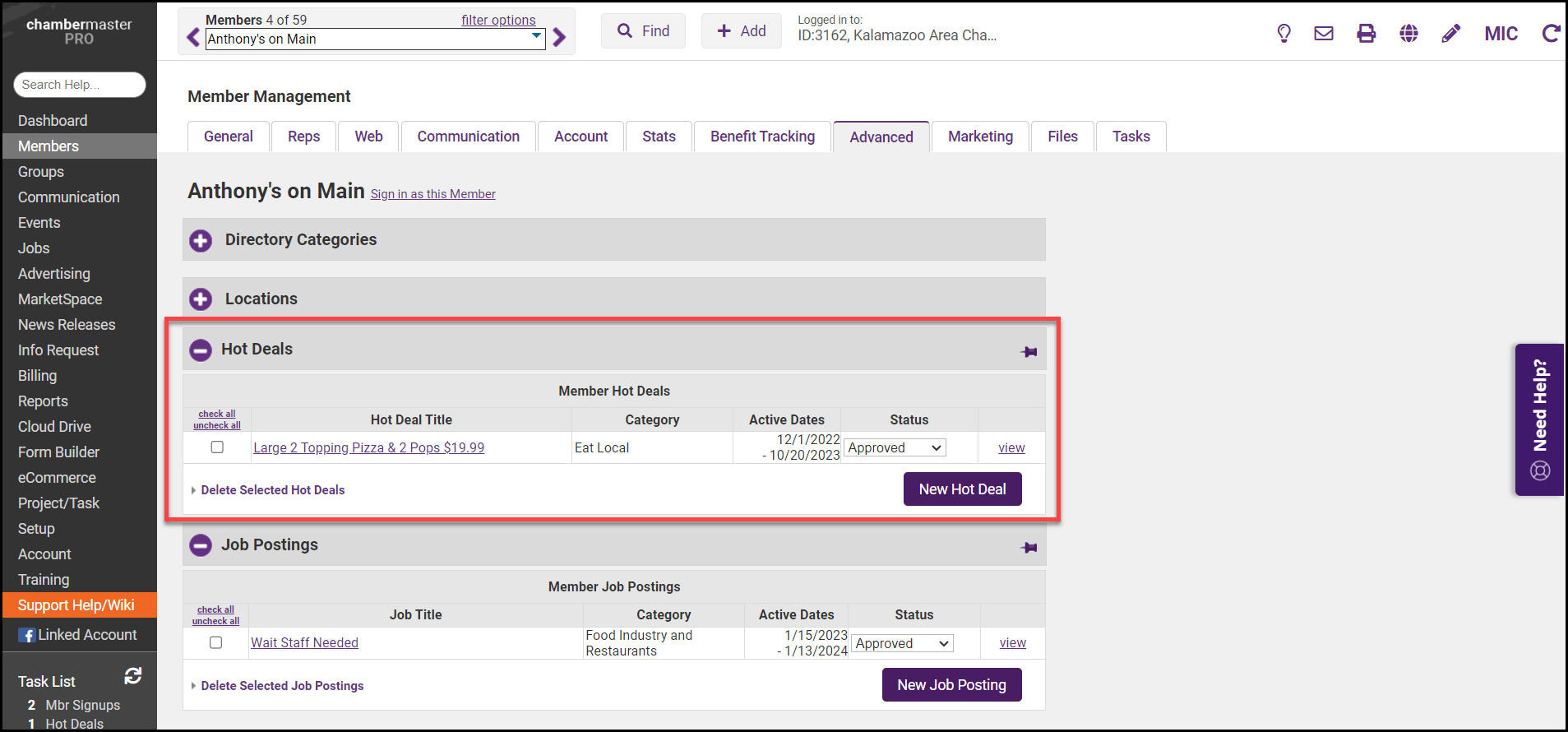 Disable a Hot Deal February 24, 2026 15:11 Updated For the desired member, click the Advanced tab. Expand the Hot Deals section if needed. For the desired Hot Deal, select Disabled from the Status list. Related articles Add A Hot Deal Delete a Hot Deal View All Hot Deals