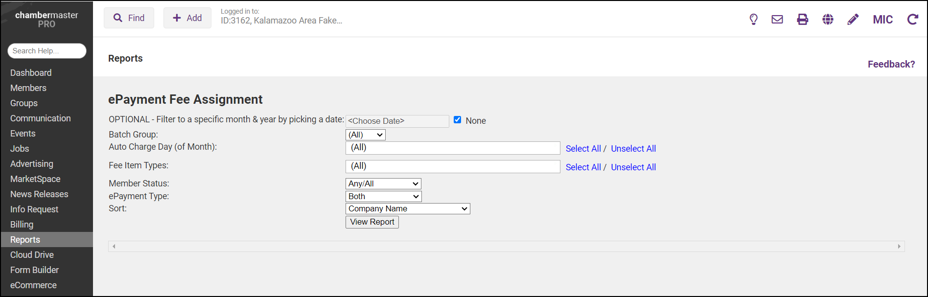 The ePayment Fee Assignment report will display which members have manual or automatic payments assigned, for how much, how often, and the start or end dates assigned. You can also report on a specific month and year to view a scheduled total of automatic payment fees to be billed that month.