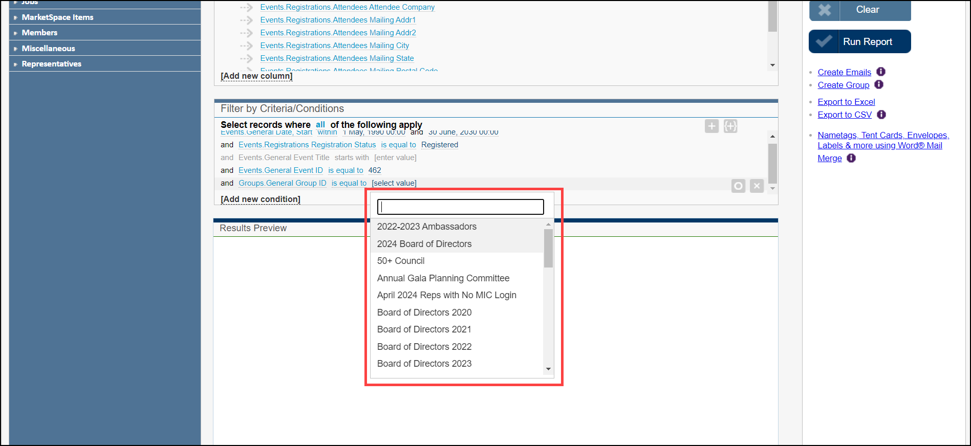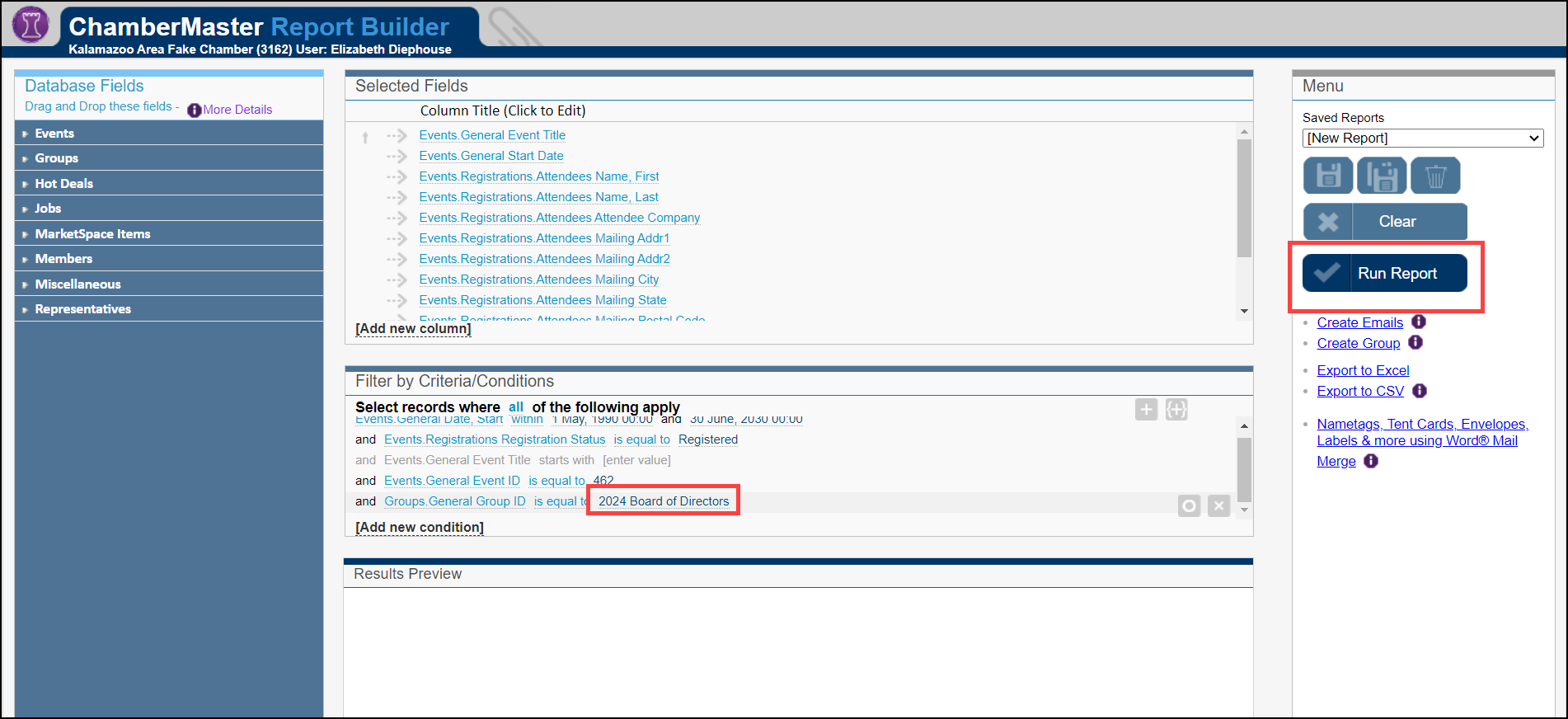 - Click Run Report to generate your Group Attendance Report.