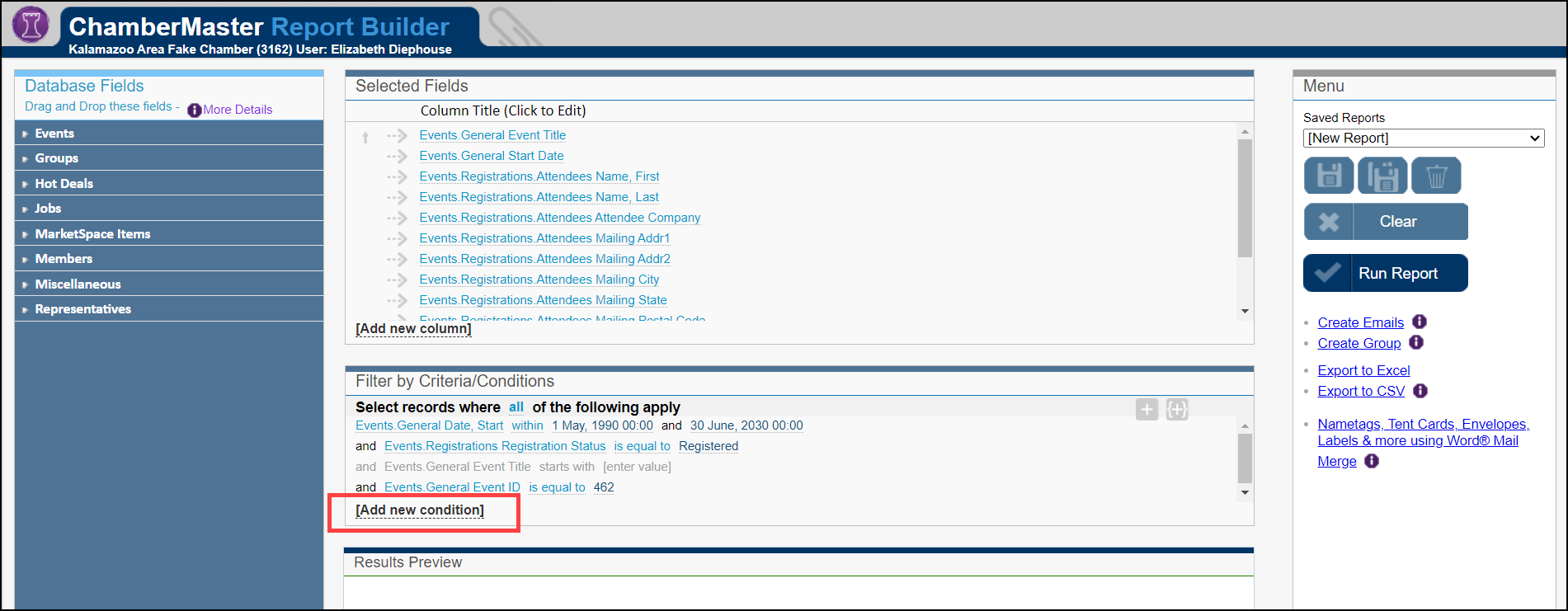- In the Report Builder window, select Add new condition.