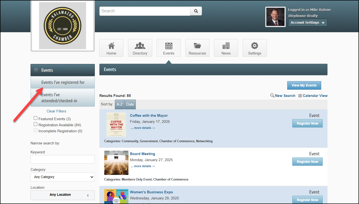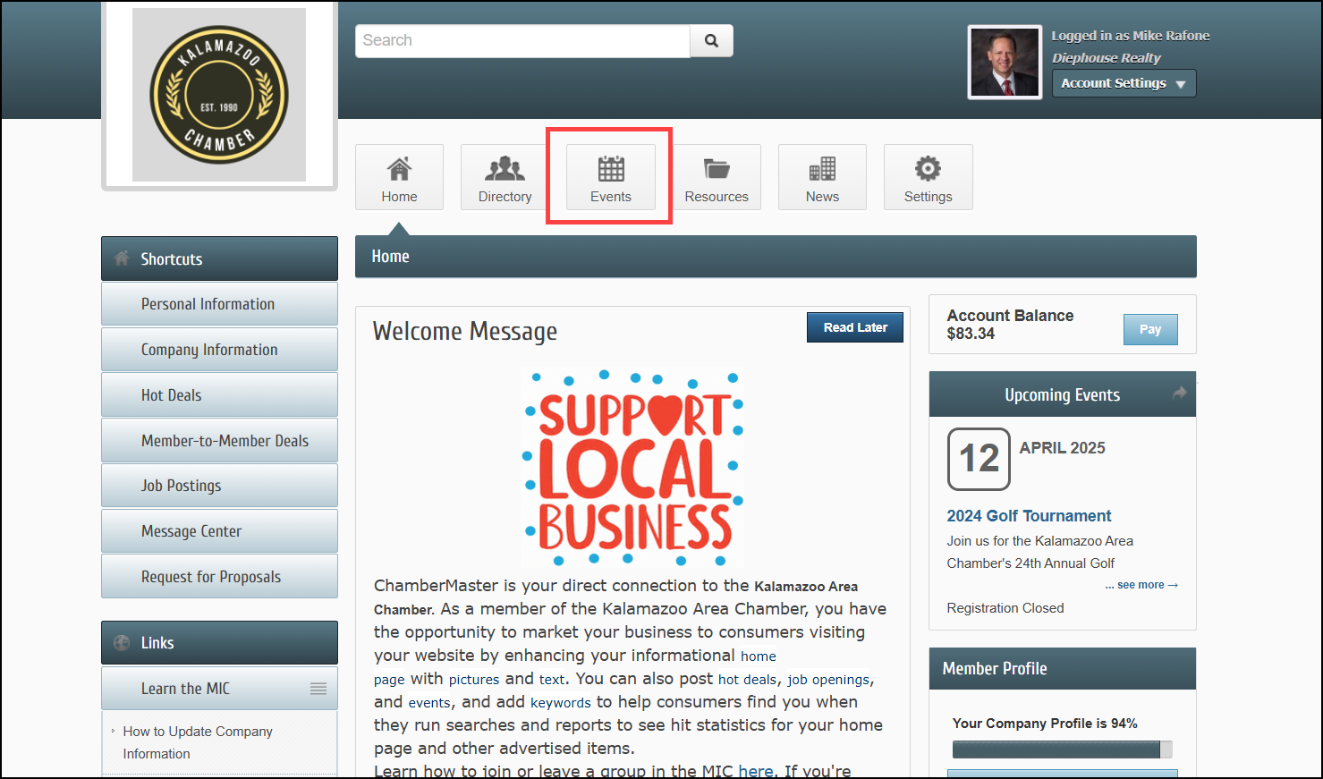 - Log in to the Member Information Center (MIC) and select Events.