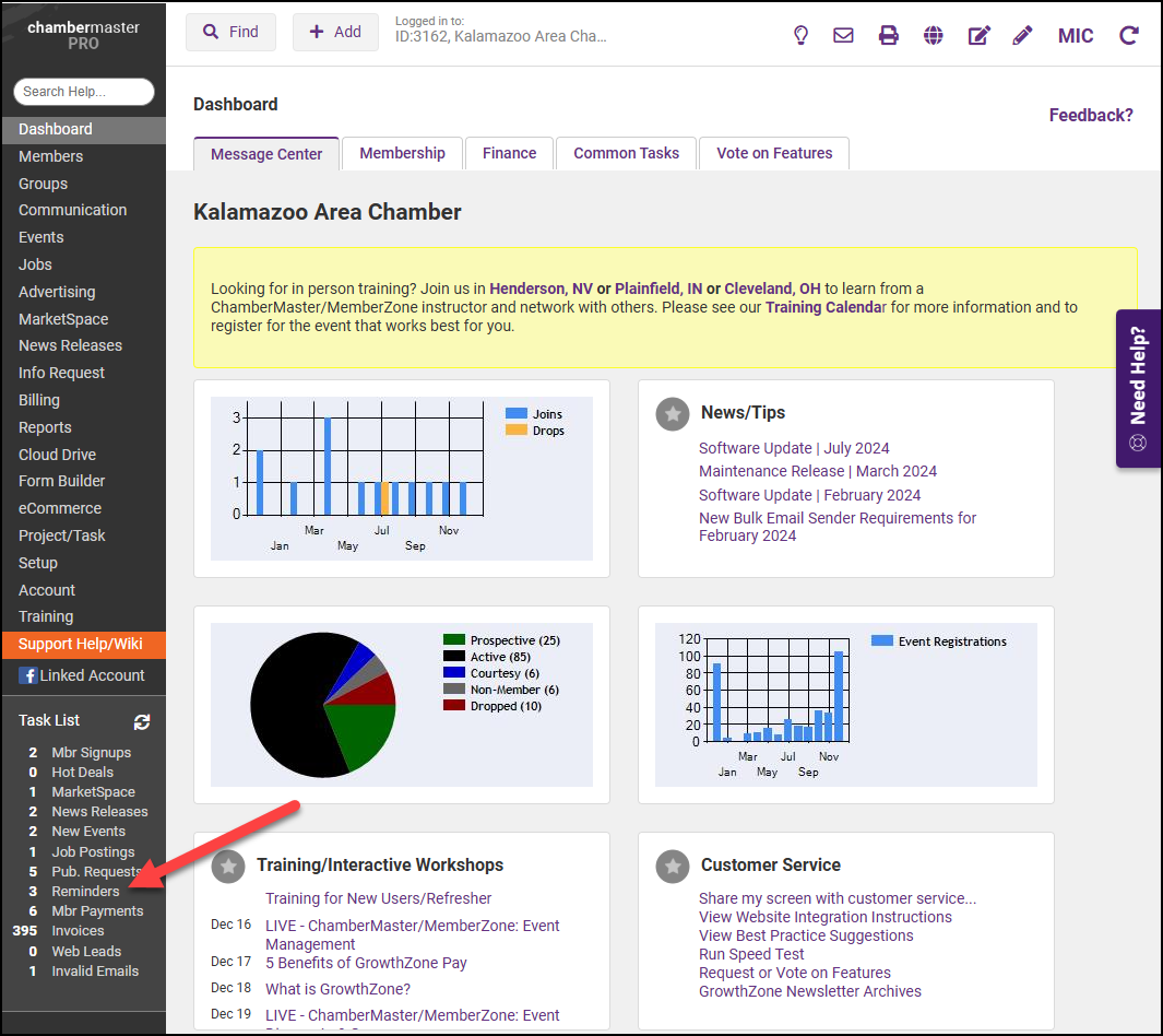 - On the Task List, select the Reminders link.