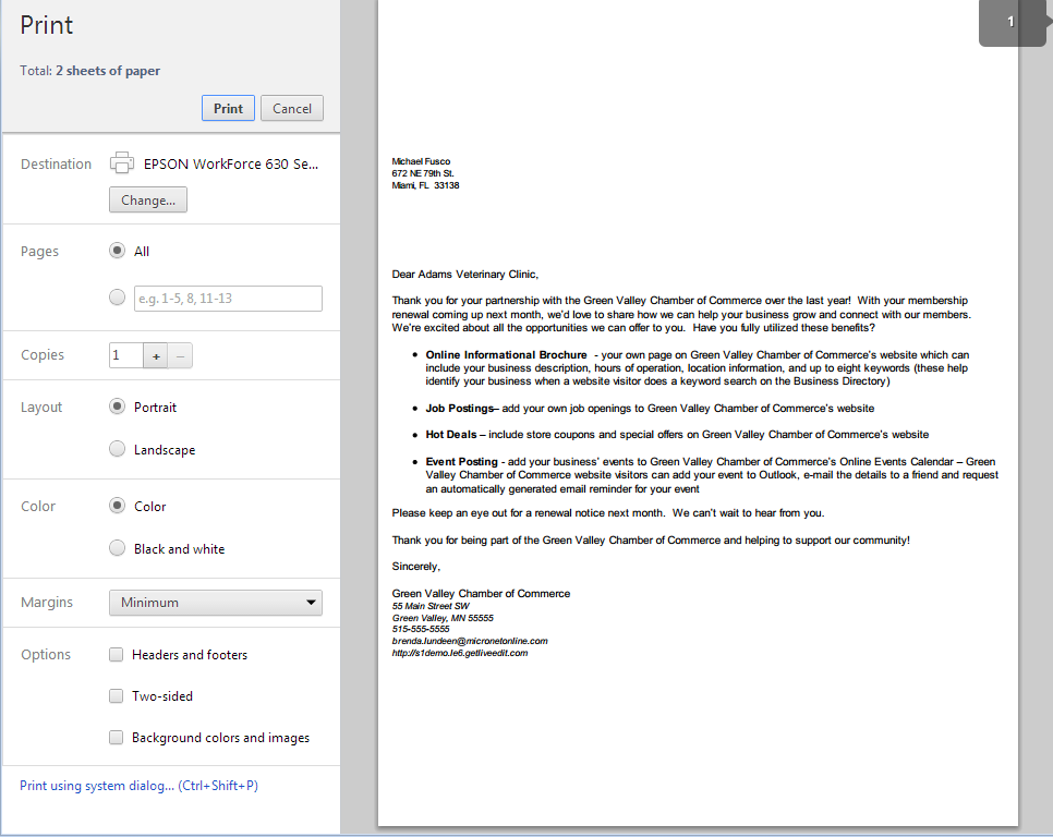 Printing in Chrome