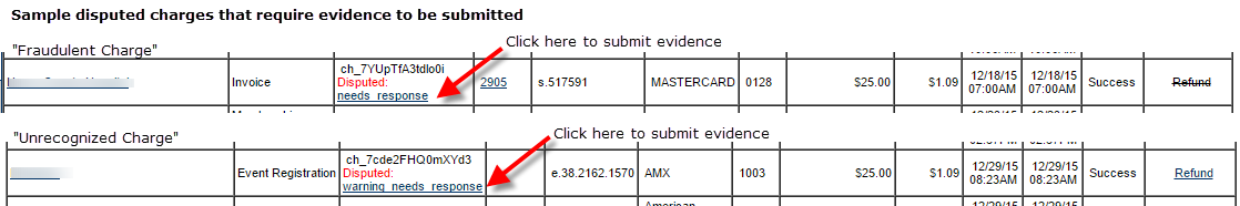 An email notification is sent to the address listed in the Payment Processing Reports/Management Tools that indicates the details of the dispute and gives directions on how to resolve the dispute.
