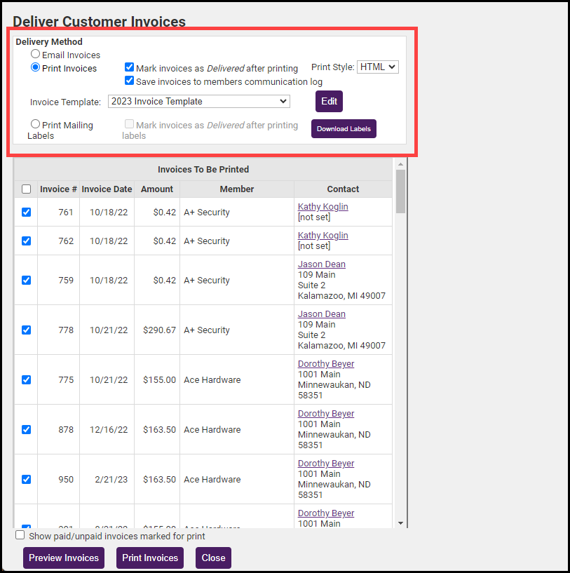 - Click the Print Invoices button.