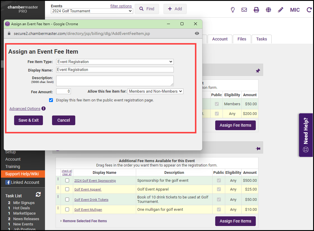 Click the Assign Fee Item button, in the Event Registration Fees section.