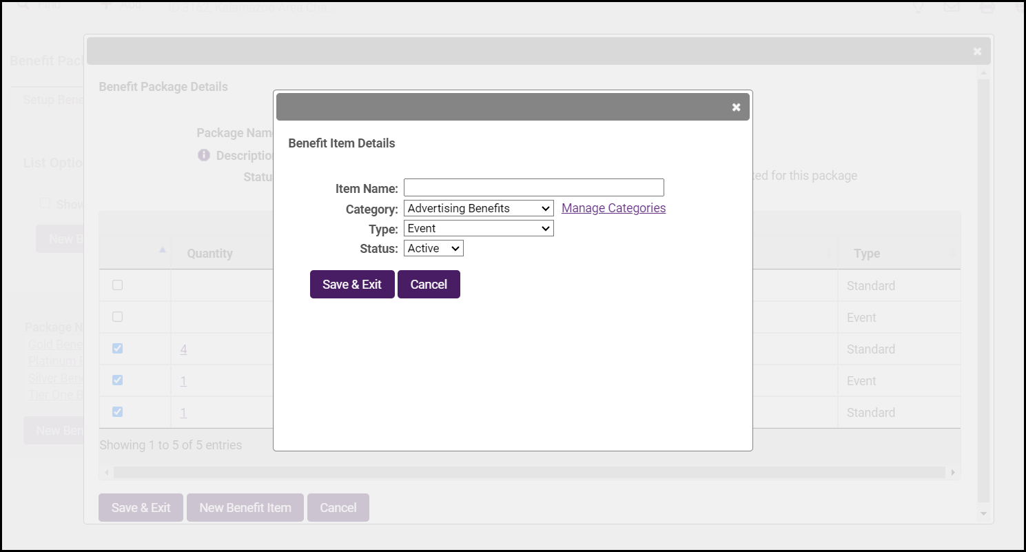 - Click Save & Exit. Additional Benefit Items can be added by repeating this process.