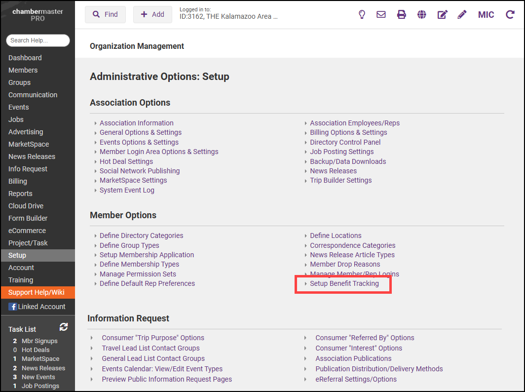 Click Setup Benefit Tracking in the Member Options section.