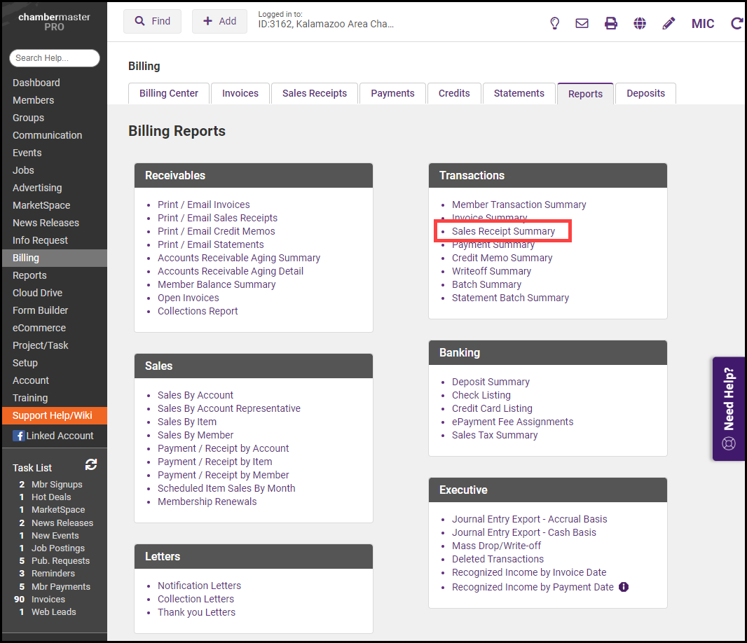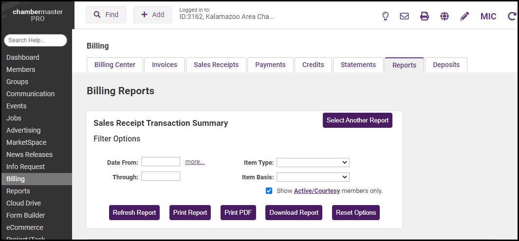 Use the Sales Receipt Summary report to view refunds processed for your members.