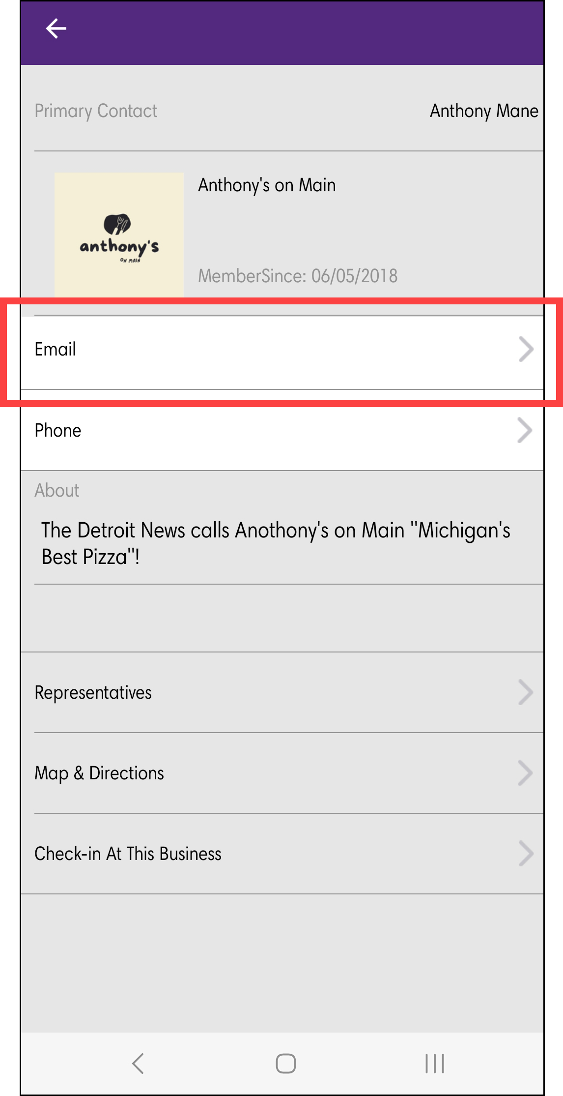 - Select the Business Directory shortcut in the MemberPlus App.