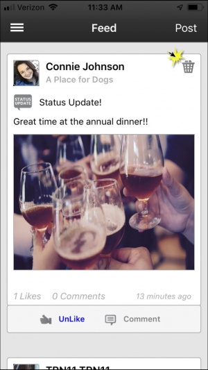 - Click the trash can icon for the post you wish to delete. NOTE: You may only delete posts that you have entered.