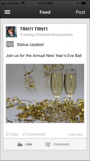 The Community Feed will display posts with the newest first. The name, and profile image (if available) of the person who added the post will be displayed. Posts may be "liked" by clicking the thumbs-up icon. Additionally, members may add comments to a post by clicking the comment icon.